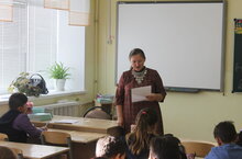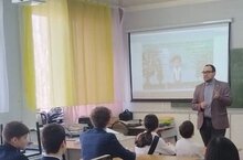 состоялась беседа в 8 б классе, где учащиеся поделились историями и фактами из военной биографии своих прадедов и информацией об одном из Героев Советского Союза - уроженца Менделеевска Белоусове В. И. -