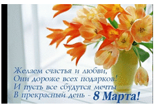 Уважаемые учителя - ветераны, коллеги - учителя, девушки, девочки. Мужской коллектив педагогов и учащихся юношей подзравляет Вас с праздником 8 Марта. Желаем Вам крепкого здоровья, весеннего солнца над головой, счастья и всего самого наилучшего.