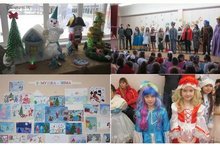 В дни зимних каникул в МБОУ «СОШ №3» проходят новогодние утренники, классные вечера. Школьный двор украсили снежные фигуры Деда Мороза и Снегурочки, на окнах школы-расписные елочки из бумажных снежинок.