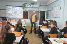 Сегодня в гости к учащимся 5А класса (классный руководитель Максютина А.И.) пришел тренер по боксу СОК "Химик" Немтырев О.В....