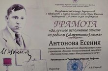 В период с 28 января по 27 февраля 2026 года ГБУ ДО «РЦВР» совместно со структурным подразделением ГБУК «Национальный музей Республики Татарстан, Музеем-квартирой Мусы Джалиля проведен Республиканский конкурс видеороликов о творчестве и подвиге великого поэта Мусы Джалиля, посвященный 120-летию со дня его рождения. В Конкурсе приняло участие 470 обучающихся 202 образовательной организации из 39 территорий РТ и РФ: 37 муниципальных образований РТ, и 2 субъектов РФ: 1 муниципальное образование Тюменской обл., 1 муниципальное образование Чувашской Республики. Антонова Есения, ученица 3 класса "А" (Руководитель Тешабаева Р. Р.) стала победителем в номинации "За лучшее исполнение стихов на родном языке". Молодцы!