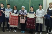 3нче А сыныфы укучылары үзләренең укытучылары, Мулланурова Л.Д., белән мәктәп китапханәсендә «Халкымның күңел бизәкләре»дигә темага чыгыш ясадылар. Алар әни-әбиләренең чиккән кулъяулыклары турында сөйләделәр.