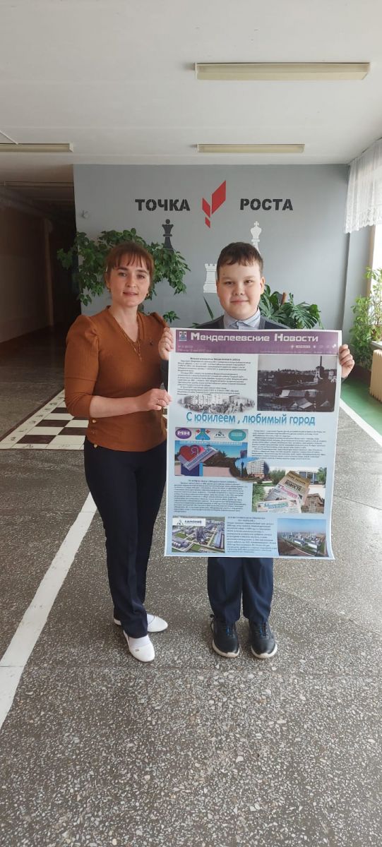 Опубликовано: 19.05.2022Учащиеся 3Б класса вместе классным руководителем Килеевой С.Н. приняли участие в конкурсе, приуроченнного к празднованию юбилея города, 90- летию районной газеты Менделеевск Яңалыклары и в честь открытия после капремонта в 3 школе учебных классов химии, физики и биологии. Для участия в конкурсе нужно предоставить один стенд от класса или группы, в котором должна быть использована районная газета и текст, или фото об истории химического предприятия АО "Аммоний". Организаторами конкурса являются Администрация ММР, Филиал АО «Татмедиа» ИЦ «Менделеевск», АО «Аммоний, Управление образования ММР.