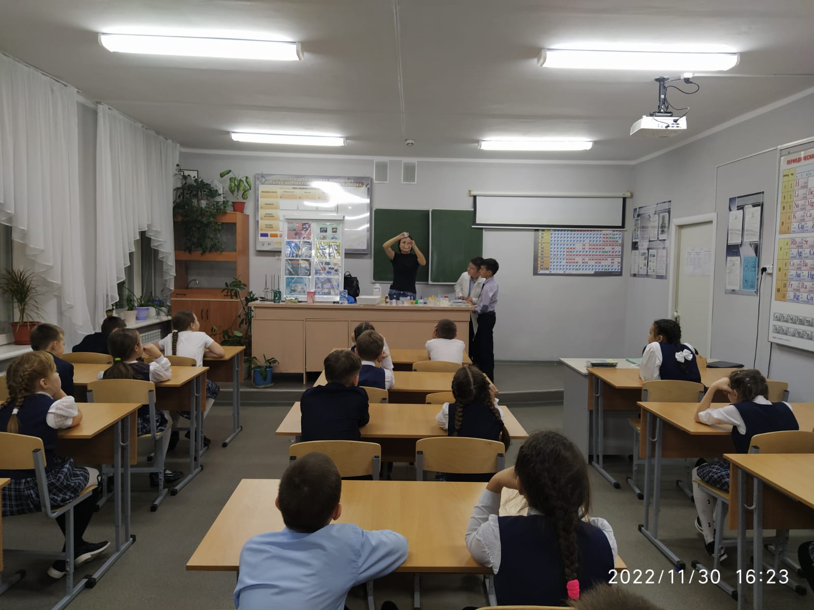 Опубликовано: 30.11.2022Сегодня, 30 ноября, сотрудник АО "Аммоний", Дер Рената Дамировна, провела мастер-класс "Путешествие в мир химии" для учащихся 4А класса