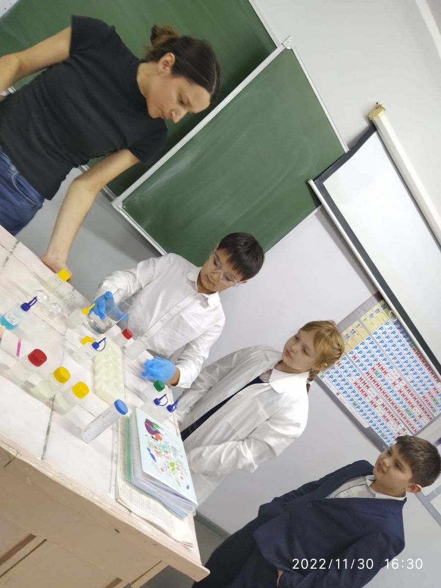 Бүген, 30 ноябрьдә, "Аммоний" АҖ хезмәткәре, Дер Рената Дамир кызы 4А сыйныф укучылары өчен "Химия дөньясына сәяхәт" мастер-классы үткәрде