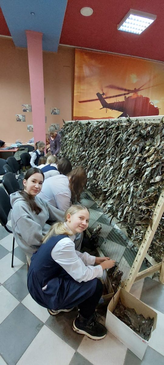 3нче мәктәпнең 6А һәм 7В сыйныф укучылары крестьянова Н.П. белән бергә мобилизацияләнүчеләргә ярдәм итү акциясендә катнаштылар. Балалар камуфлаж челтәрләрен ясарга өйрәнделәр.