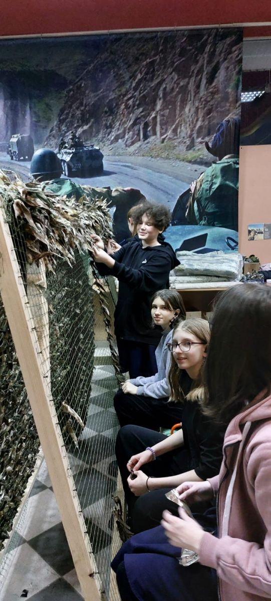 Опубликовано: 19.01.2023Учащиеся 6А и 7В классов МБОУ "СОШ №3" вместе учителем Крестьяниновой Н.П. приняли участие в акции по оказанию помощи мобилизованным. Ребята научились плести маскировочные сети.