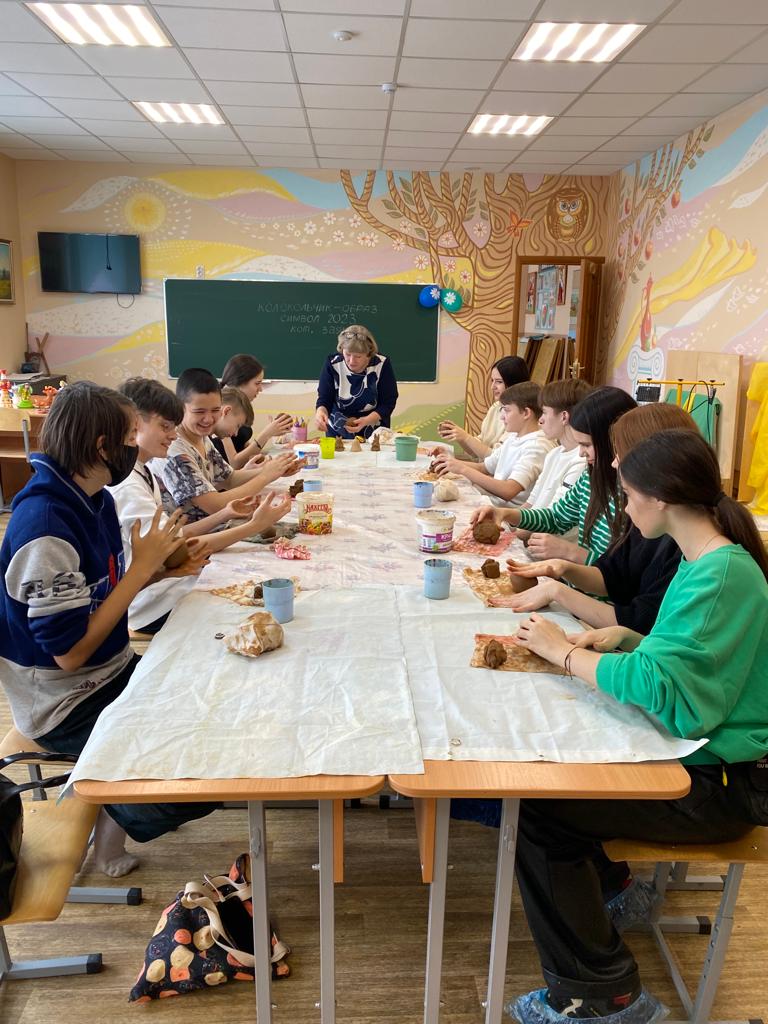 "Пушкин картасы" проекты кысаларында 8А сыйныф укучылары балалар сәнгать мәктәбендә керамика буенча кыңгырау ясау буенча мастер — класска йөрделәр. Мастер-класста катнашучылар балчыктан 2023 ел символы булган хайван-куян яки мәче формасындагы кыңгырау ясаганнар.