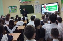 Сегодня состоялся важный диалог с председателем Совета отцов Аничкиным Р. В. с учащимися 7 А и 7 Б классов. Темой встречи стала роль совести в воспитании молодёжи и формировании нравственных ориентиров подрастающего поколения.Бүген әтиләр Советы рәисе Р.В. Аничкин белән 7 А һәм 7 Б сыйныф укучылары арасында мөһим диалог булды. Очрашуның темасы яшьләрне тәрбияләүдә һәм үсеп килүче буынның әхлакый ориентирларын формалаштыруда вөҗданның роле булды.