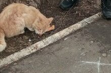 Учащиеся 6 класса МБОУ "Тат.Челнинская ООШ" во время поездки в Менделеевск на фестиваль "Без бергэ" встретили голодного кота..