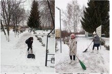 Волонтеры МБОУ "Тат.Челнинская ООШ" - ученики 7 класса после прошедшего снегопада организовали уборку в парке Памяти и Славы...