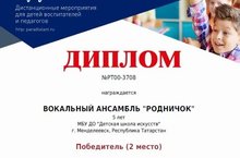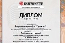 13 апреля 2020 г. ученица ДШИ г. Менделеевска Ведегис Елизавета (руководитель Лыкова Е.Н) приняла участие в XIII Всероссийском конкурсе «Гордость нации» (г.Москва) в номинации: вокальное творчество и заняла 1 место.