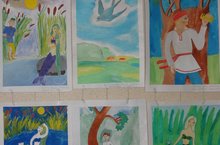 В фойе Детской школы искусств проходит выставка работ обучающихся 3-го и 4-го класса отделения изобразительных искусств, посвященная 71-й годовщине Великой Победы. Выставка называется «Они сражались за Родину».