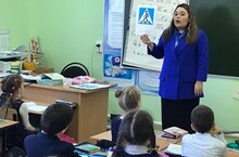 Мәликә Ибраһим кызы балалар белән юл куркынычсызлыгы кагыйдәләрен үтәүнең мөһимлеге турында эчтәлекле әңгәмә үткәрде, бигрәк тә каникулларда, ишегалдында һәм юл аша чыкканда, поездларда уйнаганда. Очрашу ахырында балалар юл йөрү кагыйдәләре буенча буклетлар алдылар. -