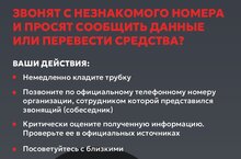 - Не передавать звонящим конфиденциальные данные. К ним относятся информация о количестве денег на счетах, логины и пароли от аккаунтов в соцсетях, банковских приложениях, на маркетплейсах, трёхзначный код с оборота банковской карты (CVC или CVV), коды из сообщений.