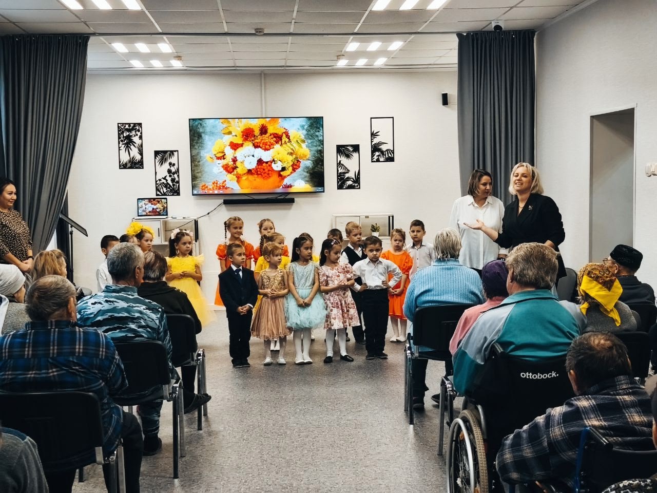Сегодня в Мензелинский дом-интернат для престарелых и инвалидов приехали с концертной программой ко дню пожилого человека, воспитанники детского сада №3 «Балачак».