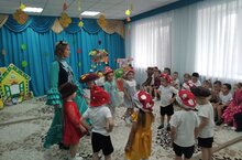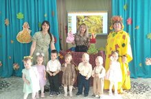 В гости к ребят приходила Осень и сказочные персонажи Ёжик, Зайчик, Медведь. Ребята вместе с героями танцевали, играли в игры. В конце праздника Осень угостила ребят сладкими яблоками. -