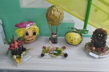 Участники выставки удивили своей фантазией, оригинальностью и творческими способностями. Были представлены поделки и композиции из овощей и фруктов, шишек, листьев, цветов и других видов природного материала. Очень порадовало, что родители не остались равнодушными и приняли активное участие вместе с детьми в изготовлении поделок и композиций. -