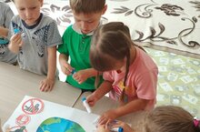 Детям очень нравится совместное творчество, они любят создавать коллективные творческие работы. Стоит только им предложить, то ребята сразу же активно и с воодушевлением начинают выполнять. Ребята изготовили коллективную работу по аппликации «Мы выбираем мир на планете!» . -