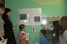 В детском саду прошла акция "Засветиться на дороге". Ее провели студенты 3 курса педагогического колледжа и дети подготовительной группы. Они раздавали буклеты родителям, провели беседу с детьми.