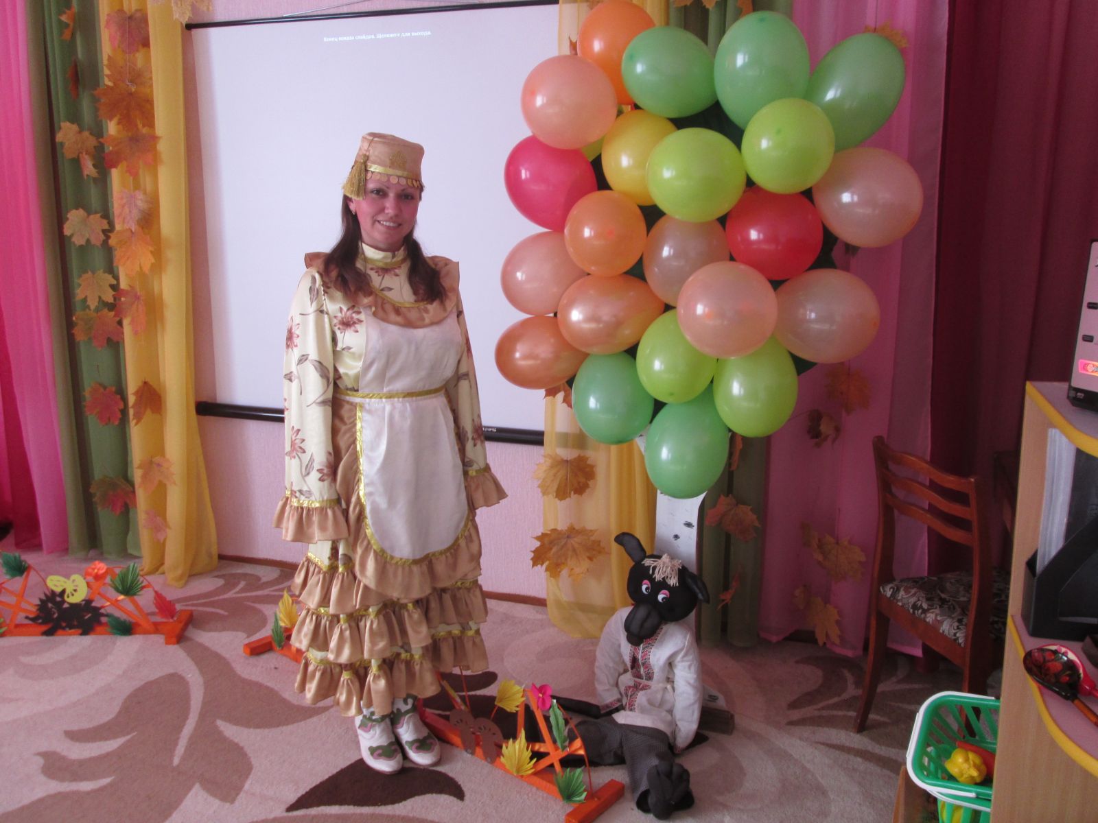 Детей развлекала подружка осени Октябрина. Она загадывала детям загадки, закрепила приметы осени. Поиграли в игры экологической направленности.