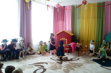 В детском саду с 28марта по 1апреля проходит неделя театра. Сегодня младшая группа показала сказку "Теремок". К сюжету классической русской народной сказки были подключены музыкальные инструменты (ложки, погремушки, бубен) и танцы. Под музыкальную постановку от Е. Железновой дети выполняли танцевальные движения с чуством ритма. Герои выступали артистично и с большим желанием.