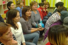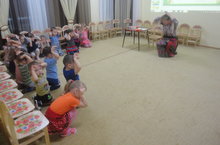 С целью воспитания интереса и любви к народным сказкам проводилось развлечение "В гостях у сказки". В гости к ребятам пришла Сказочница. Она проводила с ребятками много сказочных игр, загадывала загадки, показала кукольный театр "Колобок".