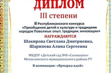 Педагоги ДОУ Шакирова СД., Шарипова А.С., Фаррахова Л.А.,Мухамадеева А.Е.,Чебашева О.В.,стали призерами на Республиканском конкурсе методических разработок " Диалог культур народов Поволжья".