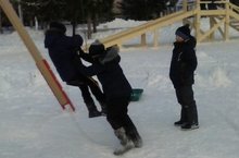 Лагерьда ял итүче балалар Чыршы янында кышкы уеннар уйнадылар, күңелле ял иттеләр.