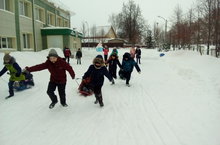Билгеле инде, кышкы лагерь булгач, балалар рәхәтләнеп саф һавада уйнадылар.