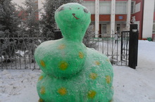 С наступлением нового года в городе один за другим вырастают снежные фигуры.