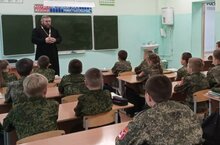 Сегодня в нашей кадетской школе- -интернате для учащихся 4 классов прошло факультативное занятие из курса "Уроки православия" с настоятелем Казанско - Богородской церкви, священником Евгением Лазаревым.
