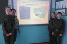 Ученики 6 класса Аристова С., Валентинов М., Чигвинцева О. (учитель математики Т.П.) защищали проект на тему: «Математика и спорт»