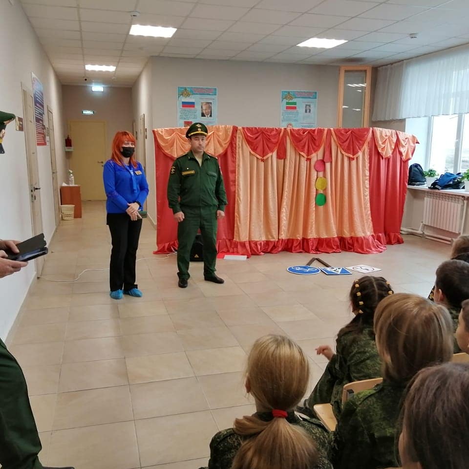 Опубликовано: 09.10.2020Кадетскую школу-интернат посетили сотрудники Отдела ГИБДД ОМВД России по Мензелинскому району. Приехали они не одни, с целым представлением. В гости к кадетам приехали сказочные герои и кукольный театр. В игровой и веселой форме ребятам рассказали правила безопасного поведения на дорогах.