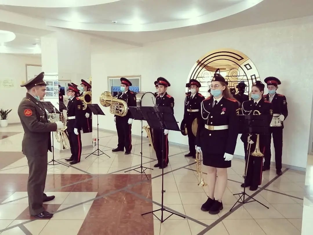 Опубликовано: 20.10.202120 октября духовой оркестр нашей школы под руководством Курченкова Сергея Анатольевича принял участие в мероприятии «Занятие школы правовых знаний по теме "Права призывников"», которое состоялось во дворце культуры г. Мензелинска. В занятии приняли участие военный комиссар Республики Татарстан генерал-майор Сергей Погодин и Уполномоченный по правам человека в Республике Татарстан Сария Сабурская.