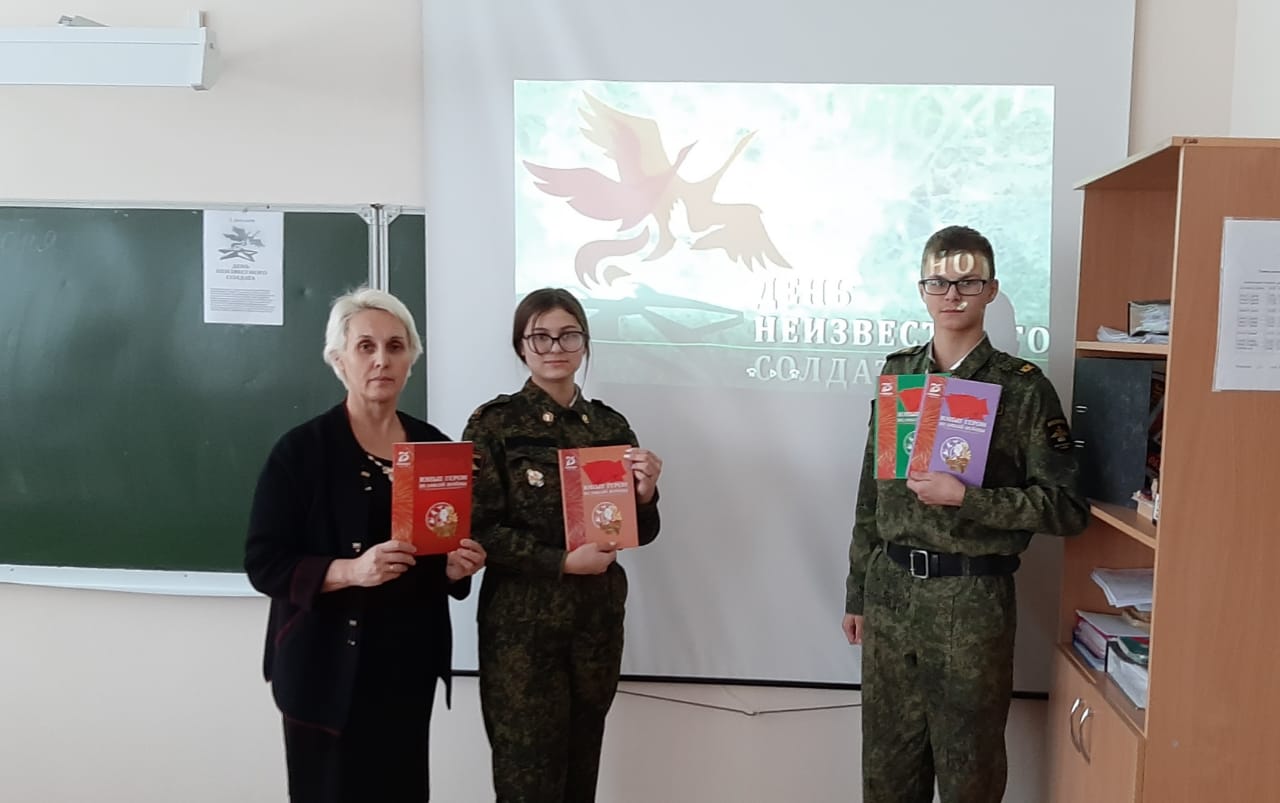 Опубликовано: 03.12.20213 декабря в 5,7,8-11 прошел урок Мужества "Имя твоё неизвестно, подвиг твой бессмертен", посвящённый Дню Неизвестного Солдата. Это памятная дата отмечается с 2014 г. Цель урока - увековечивание памяти о защитникам, о солдатах не пришедших с войны, о неизвестных воинах, которые остались лежать на полях сражений защищая нашу Родину.