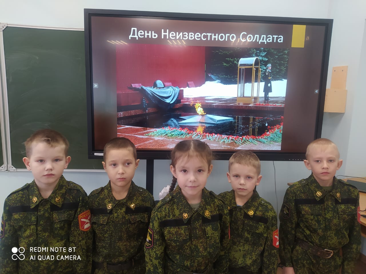 Россия Федерациясе Президенты В.В. Путин Указы белән 2014 елның 3 декабреннән Россиядә яңа истәлекле дата - Билгесез солдат көне билгеләнде. 1 нче сыйныфта әлеге истәлекле датага багышланган сыйныф сәгате үткәрелде. Сыйныф сәгатенең максаты: 3 декабрьдә истәлекле көн, Билгесез солдат көне турында комплекслы күзаллау булдыру һәм Ватанга, аның тарихына, гореф-гадәтләренә сак караш тәрбияләү. Солдат ике тапкыр үлә: беренче тапкыр-шунда, сугыш кырында, пуля килеп җиткәч, икенче тапкыр-халык хәтерендә. Икенче тапкыр үлү куркынычрак, икенче тапкыр солдат яшәргә тиеш, ә без, хәзер җирдә яшәүчеләр, моның өчен барысын да эшләргә тиеш.