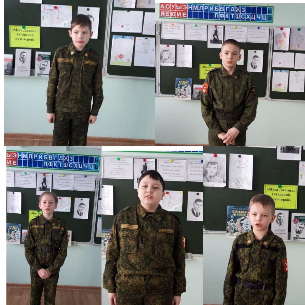 16 февраль көнне башлангыч сыйныфларда герой-шагыйрь Муса Җәлилнең тууына 116 ел тулуга багышланган «Син һәрвакыт тере үрнәк буласың...» дигән темага сыйныфтан тыш чара үткәрелде. Балалар шагыйрьнең тормыш юлы һәм иҗаты белән таныштылар. Аның рус һәм татар телләрендә шигырьләрен укыдылар, рәсемнәр ясадылар. Шигырьләрне иң яхшы шигырь укучылар: 1 урын-Сютков Е., Кучахметова А.; 2 урын –Галиев Д., Никитин Т., Федосеев Я., Самаркина А., Огорельцев В., Кучахметова А.; 3 урын – Никитин Д., Ощепков М., Шимановский Е., Никитина К. - норматов А., Шагалиев Д., Кучахмәтов.
