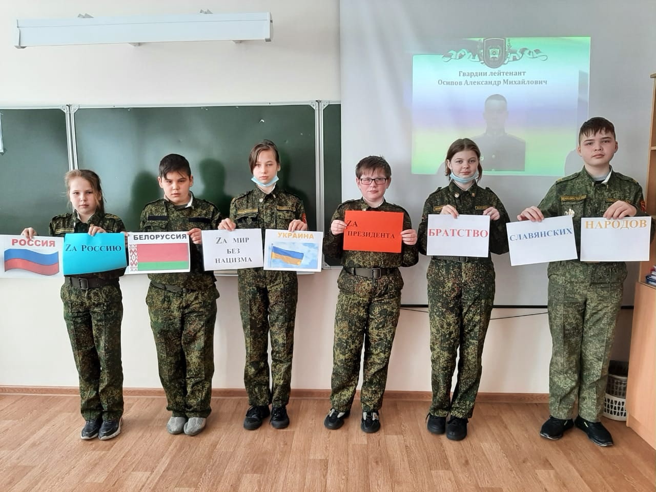 Опубликовано: 18.03.2022Сегодня у нас ,как и во всех образовательных организациях нашей страны прошел урок Мужества "Герои нашего времени" ,посвященный подвигу одного из героев России-Александра Михайловича Осипова,погибшего в марте 2022 при проведении Вооружёнными Силами РФ специальной военной операции на Украине.