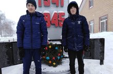 Активисты дружины очистили от снега памятник, павшим в ВОВ. В честь дня защитников отчества возложили венок к памятнику