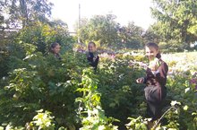 Учащиеся нашей школы собирают листья смородины.