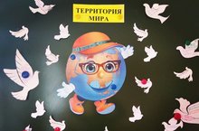 В рамках декады "Экстремизму-нет!" учащиеся создали баннер "Территория мира". На каждом голубе дети написали, что для них обозначает "МИР".