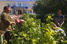 Наши учителя собирают ягоды смородины