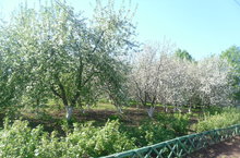 Изумителен цветущий яблоневый сад. Вот он стоит, счастливый, богатый, роскошный! И легкая прохлада овевает его. Сад вспыхнул пенным пожаром бело-розовой массы цветов. На коре деревьев бусы росы переливаются на солнышке. А под деревьями - свежая зелень трав, усыпанная легкой метелью нежно-розовых, снежно-белых лепестков.