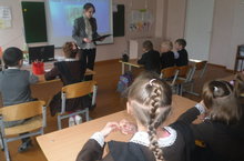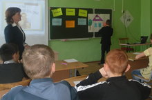 Вначале была проведена беседа о семье, счастье, о доме. Была проведена интересная работа в группах «Напиши в ладошках характеристику своей семьи и прикрепи к макету дома». Затем подошли к тому, что хранительницей очага является женщина – мама, а хозяином – папа. Учительница читала интересное стихотворение «Дом». Также ребята вспомнили пословицы о семье и отвечали на интересные вопросы.