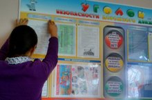 В рамках акции "Неделя безопасности" учащиеся под руководством членов отряда ЮИД обновляют уголок БДД.