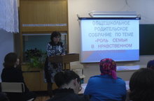 Общешкольное родительское собрание прошло по теме "Роль семьи в нравственном воспитании". Были затронуты вопросы развития у подростков моральных и нравственных качеств, традиции семьи, влияющии на воспитание.