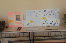 В честь Дня космонавтики в нашей школе провели игру "Приглашаем в звездный дом", организовали выставку рисунков начальных классов на тему "Космос в геометрических фигурах"