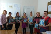 Председатель профкома Ахвалеева А.А. вручила подарки .