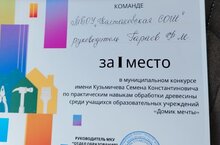 Команда нашей школы (руководитель Гараев Ф.М.) стала победителем муниципального конкурса имени Кузьмичева Семена Константиновича по практическим навыкам обработки древесины среди учащихся образовательных организаций "Домик мечты". Поздравляем победителей и руководителя! Желаем дальнейших успехов!